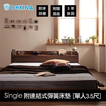 【OHKINA】日系附床頭櫃-插座的矮床組(附連結式彈簧床墊)_臺灣尺寸單人3.5尺(2色)床架-橡木白