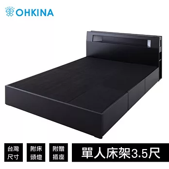 【OHKINA】日系附床頭燈-插座-收納空間的床(只有床架)_臺灣尺寸單人3.5尺